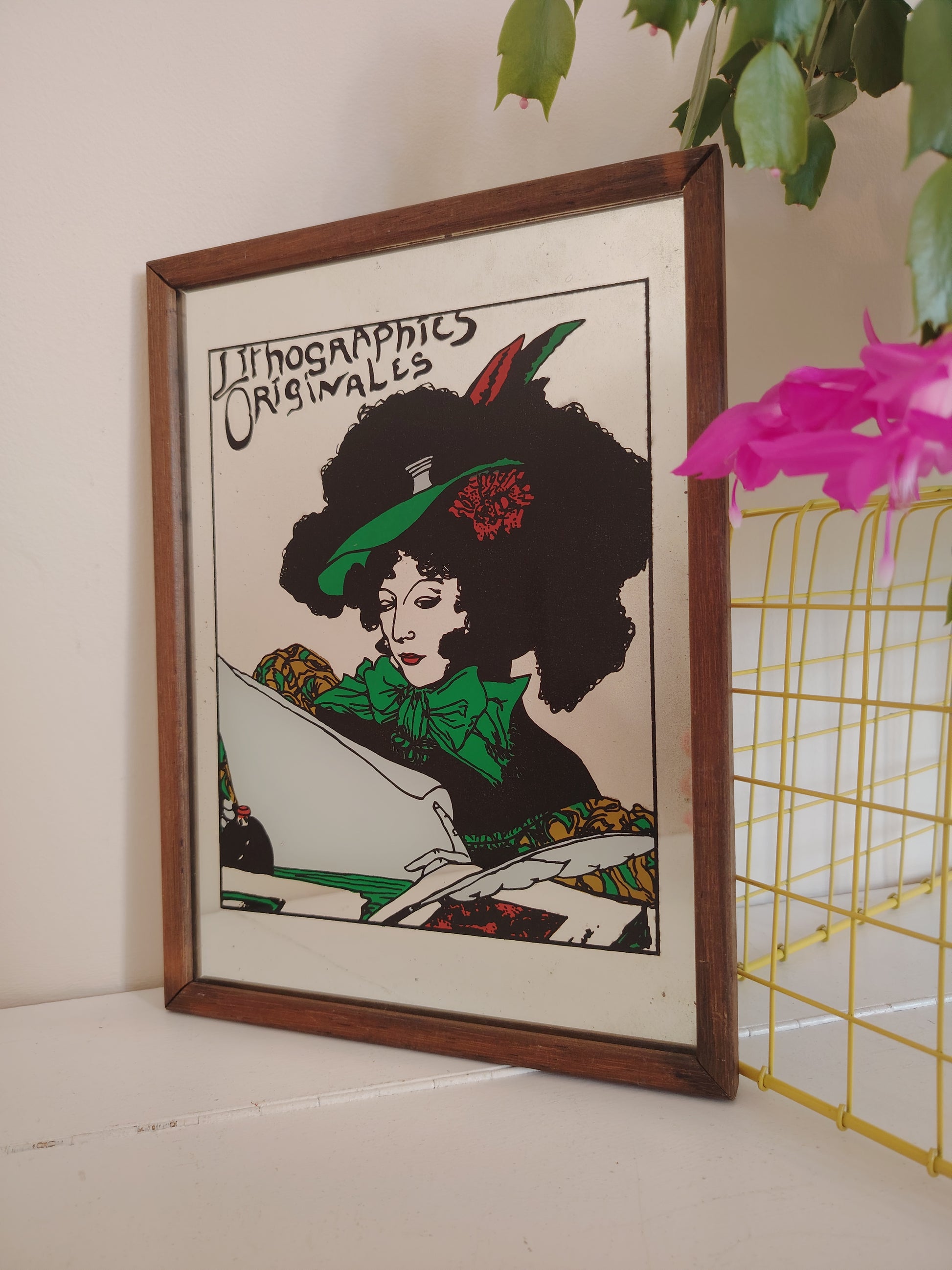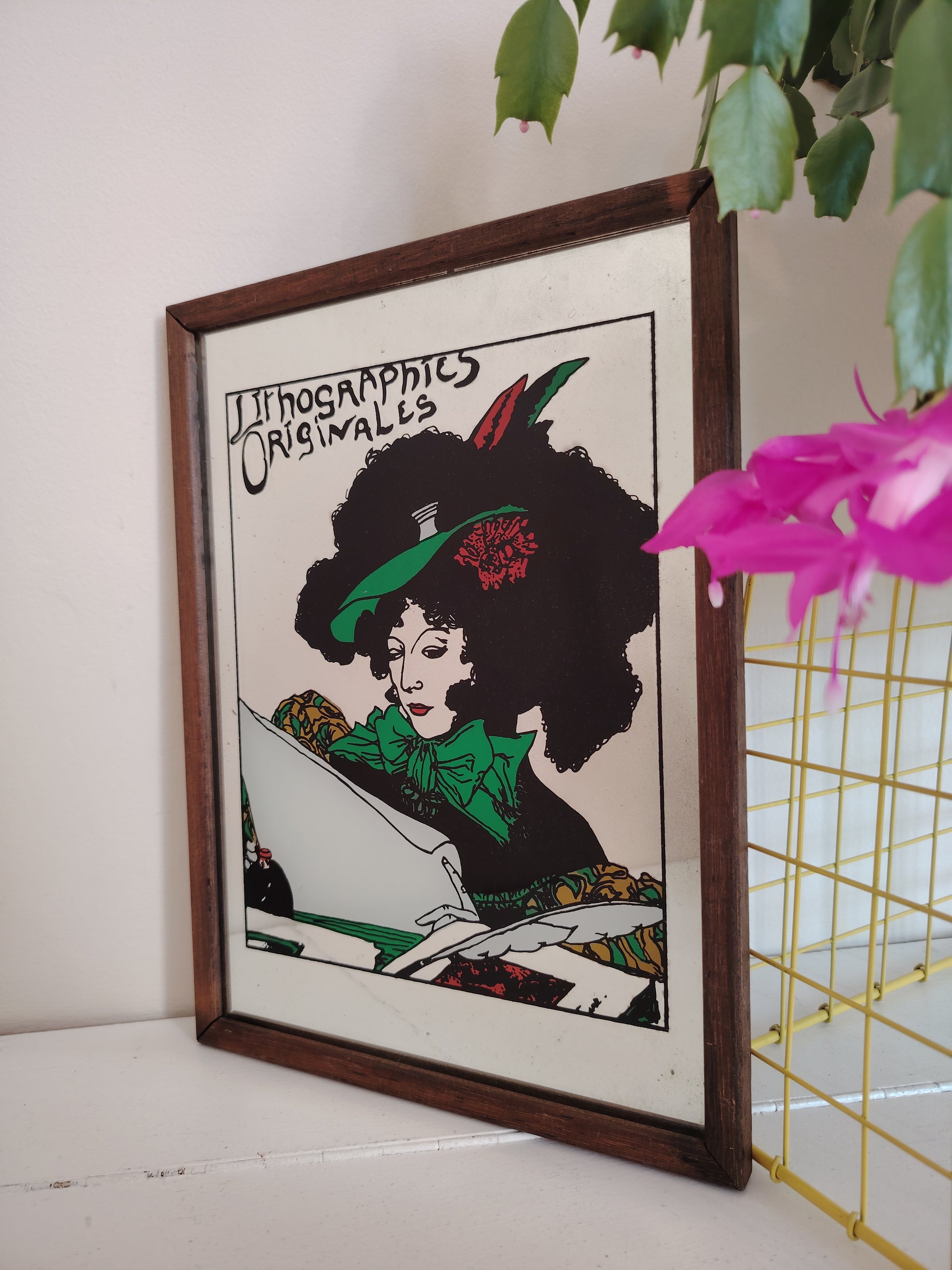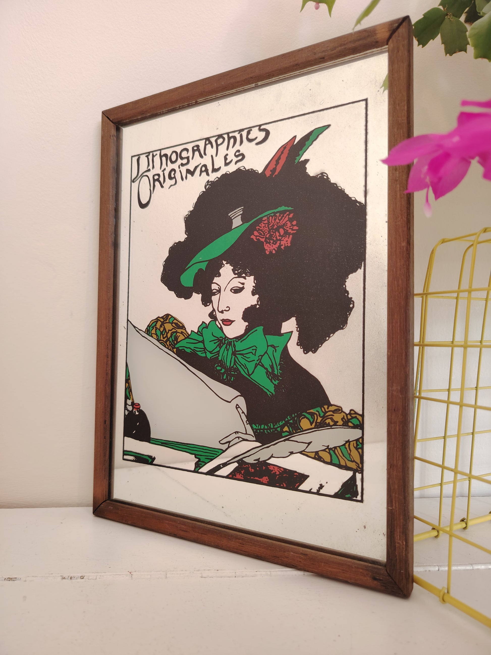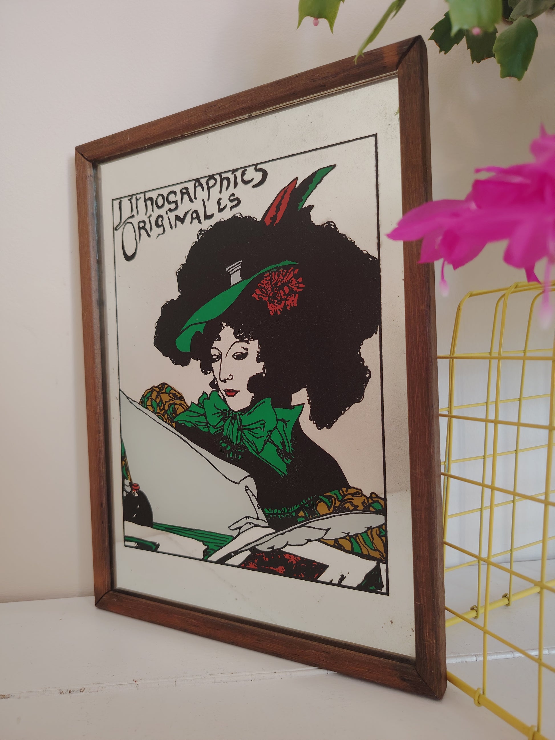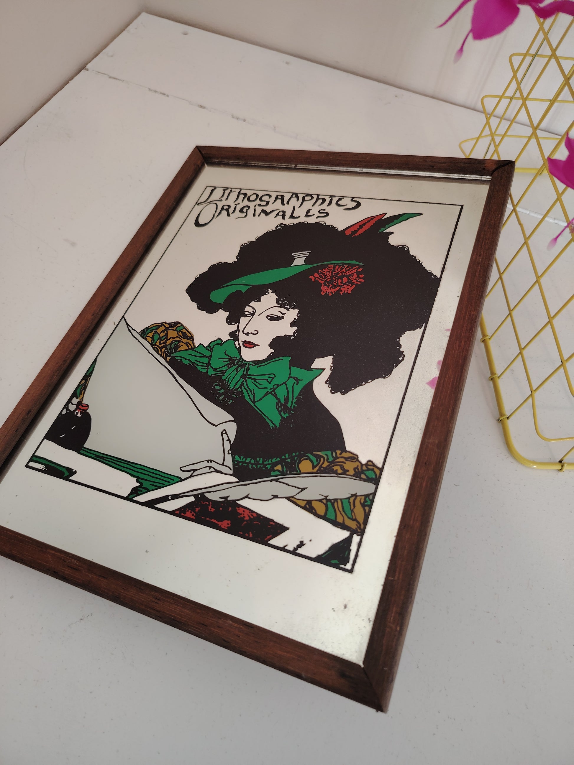 Gorgeous "Lithographies Original es" Art Nouvea Style Picture Mirror with a lovely lady writing at her desk.