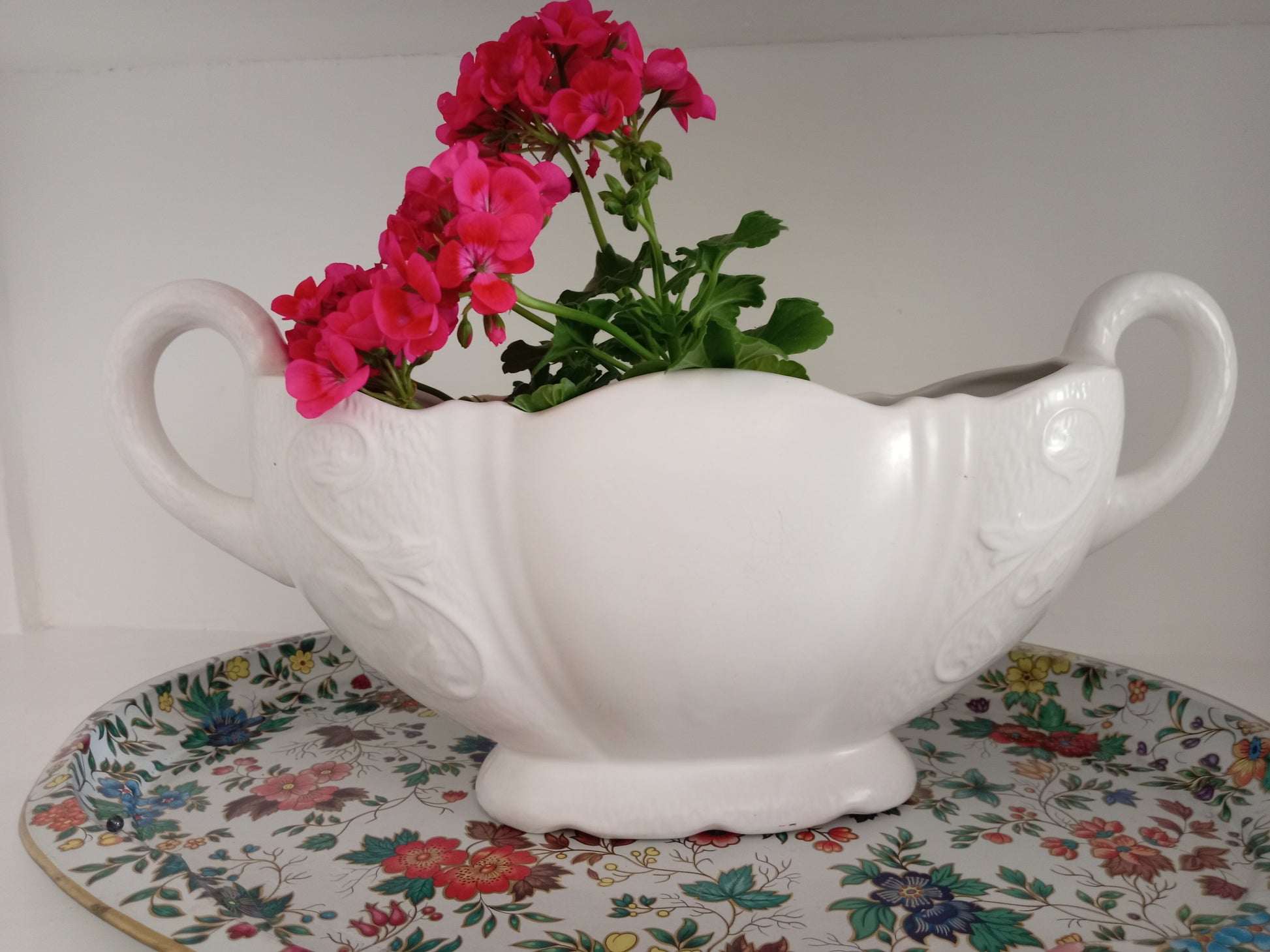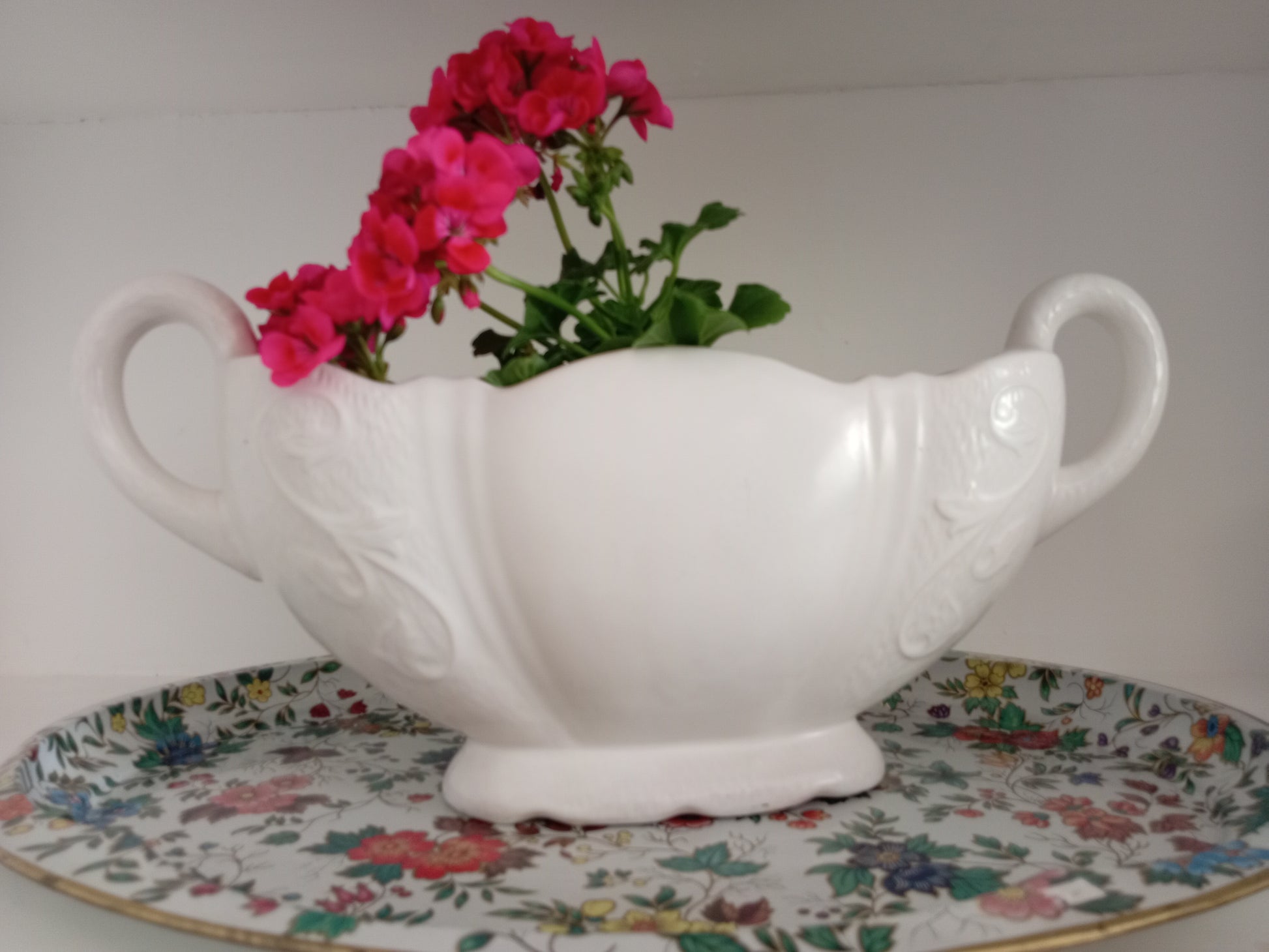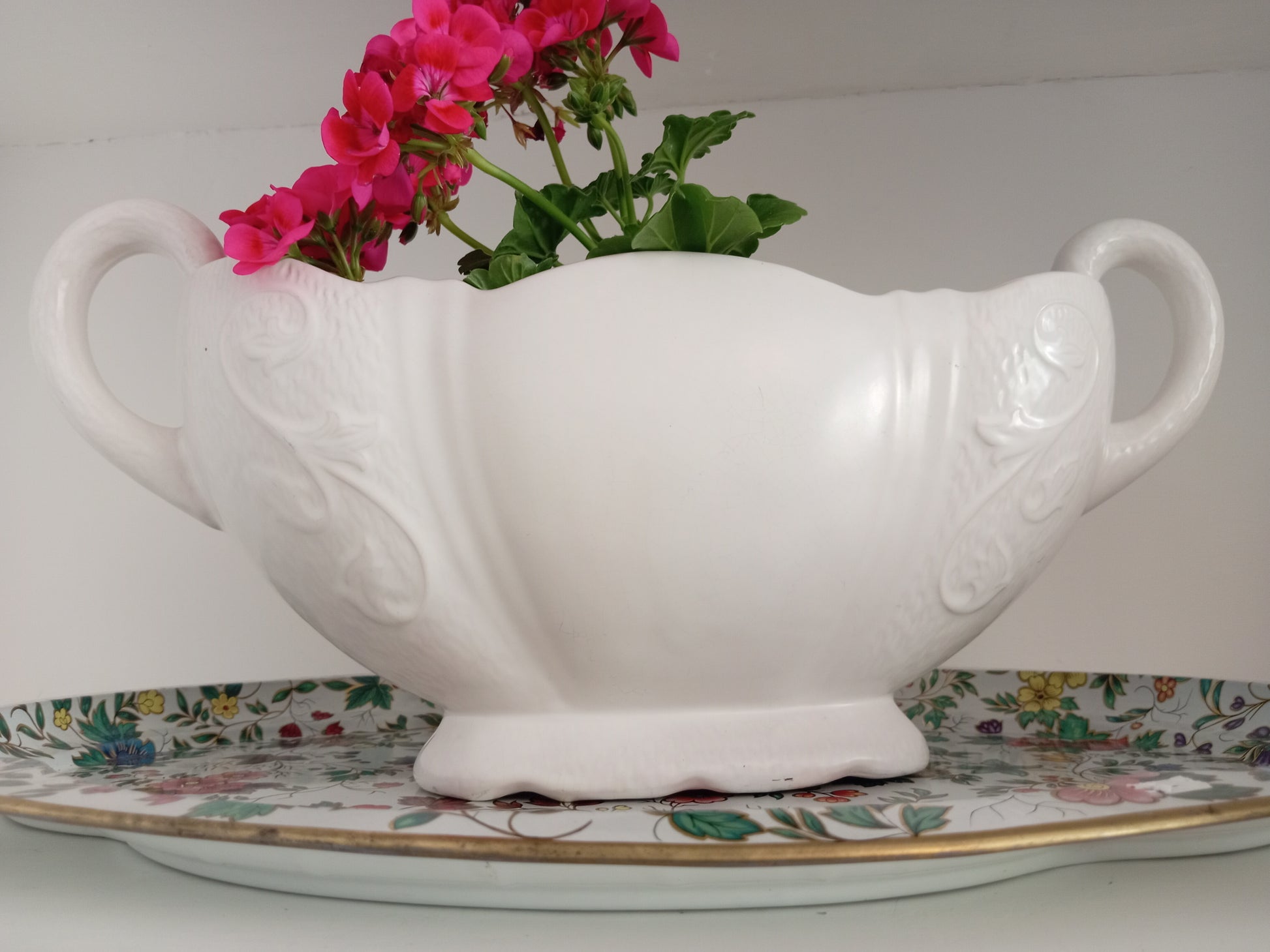 Measures 45cm wide from handle to handle and 17cm high.