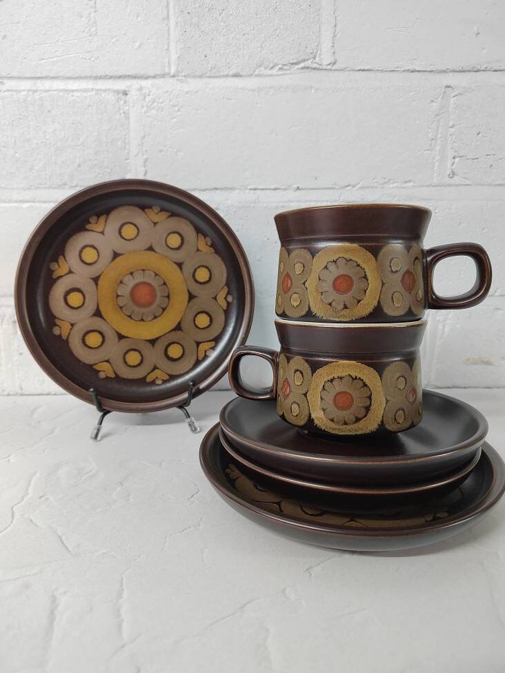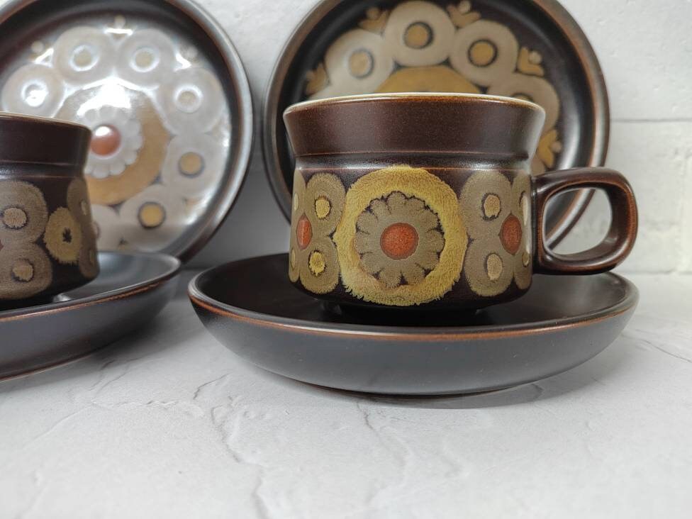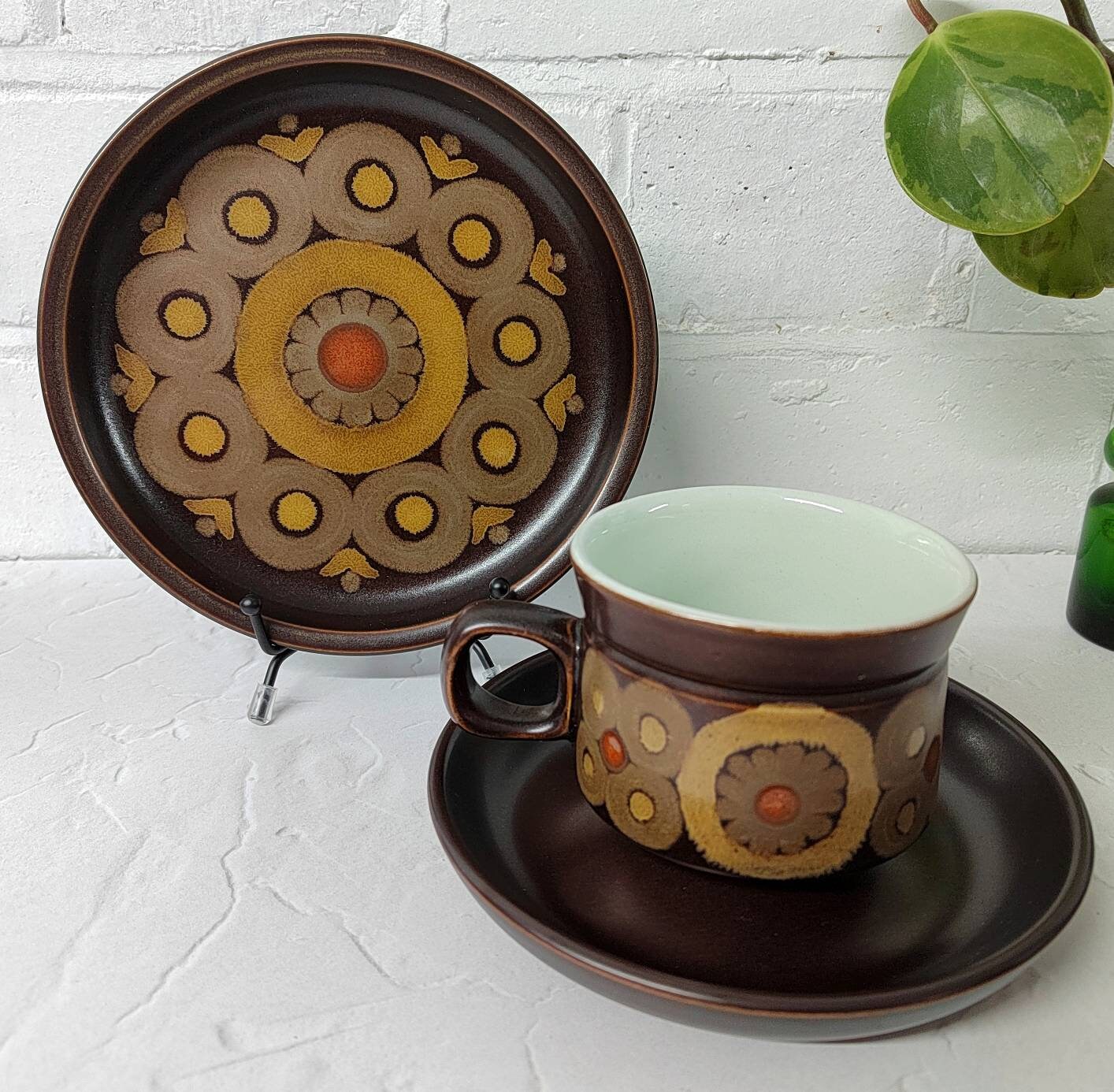 Made in England in the 1960's this lovely Denby pottery design on this cup and saucer set is a lovely vintage addition to a retro inspired home.