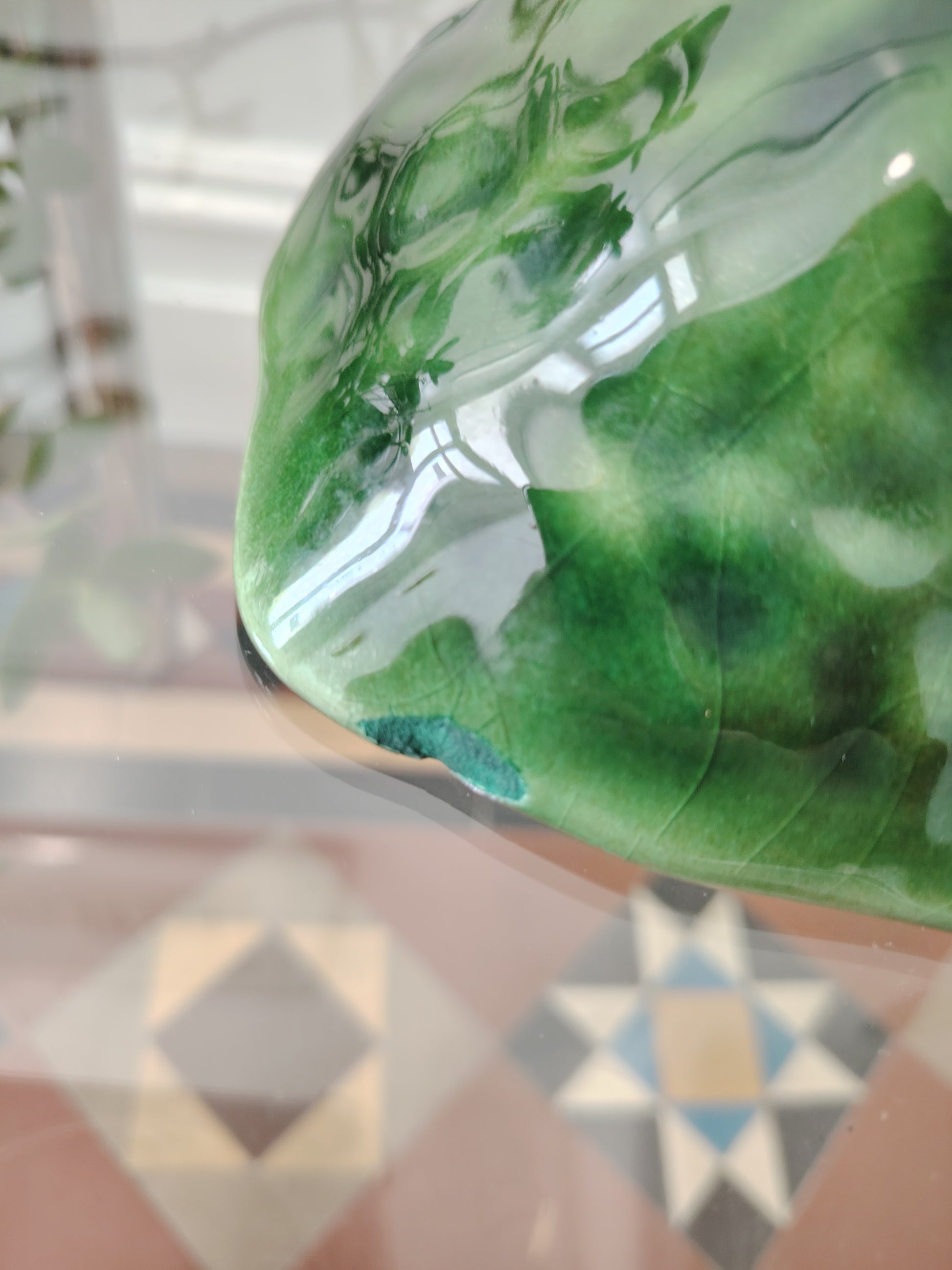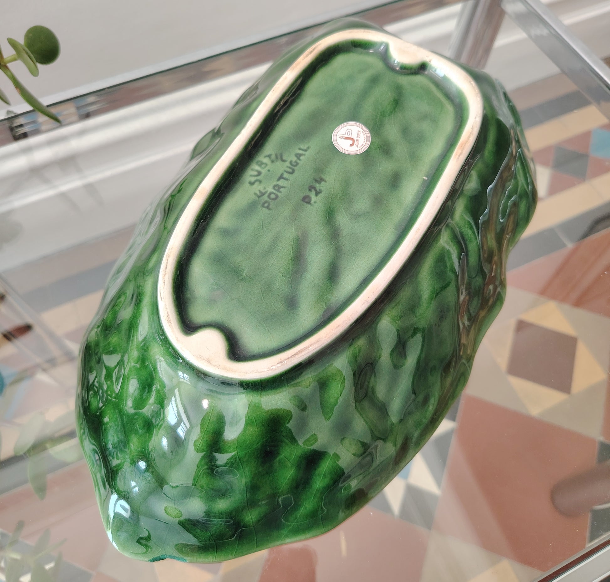 Stunning vintage Portuguese Cabbage Ware Leaf serving bowl by Subtil Portugal.