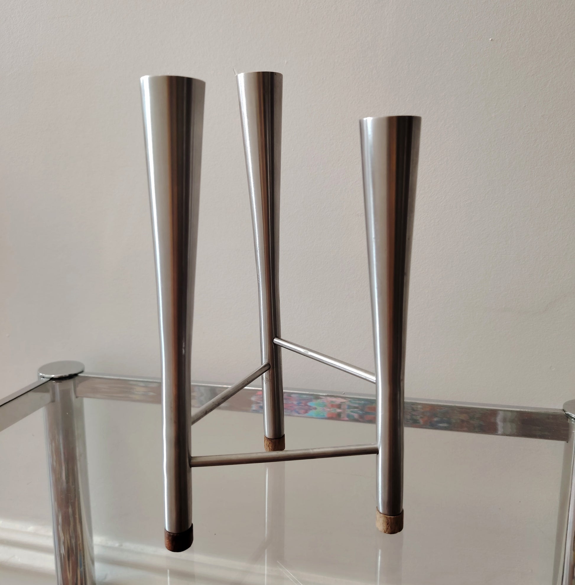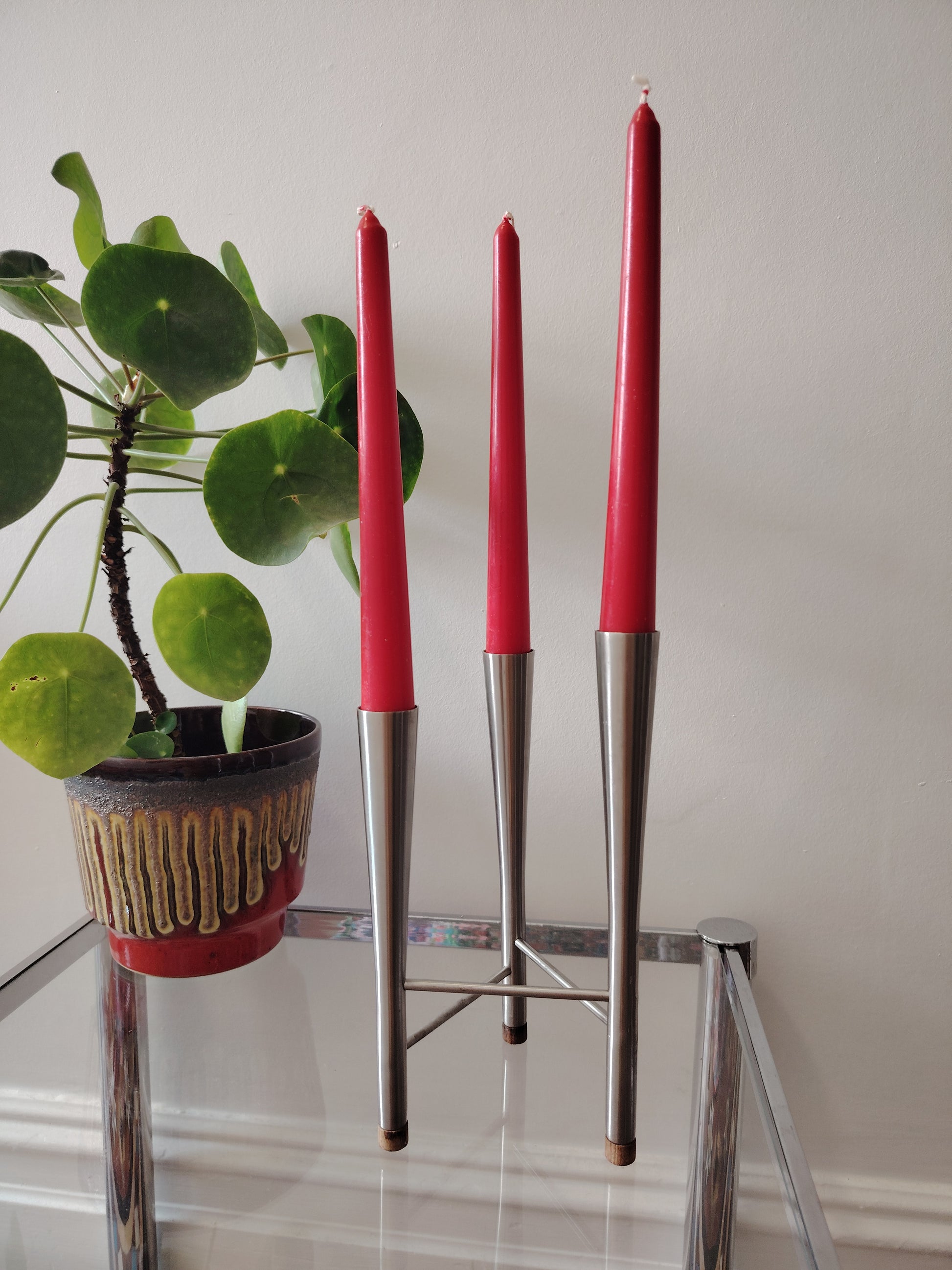 Old Hall Stainless Steel Triple Candle Holder by Robert Welch/ Mid Century Candle Holder