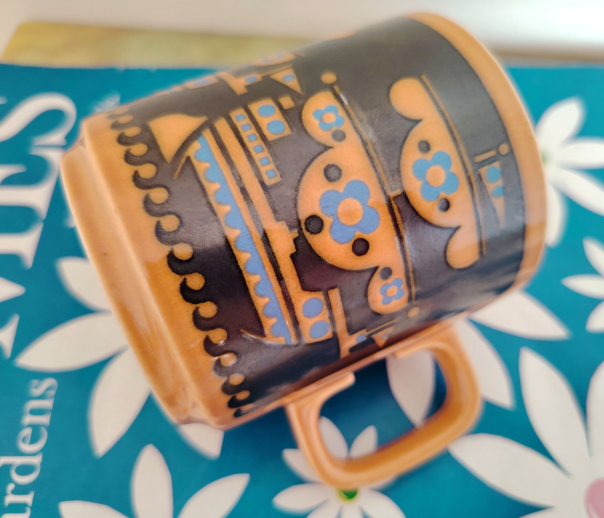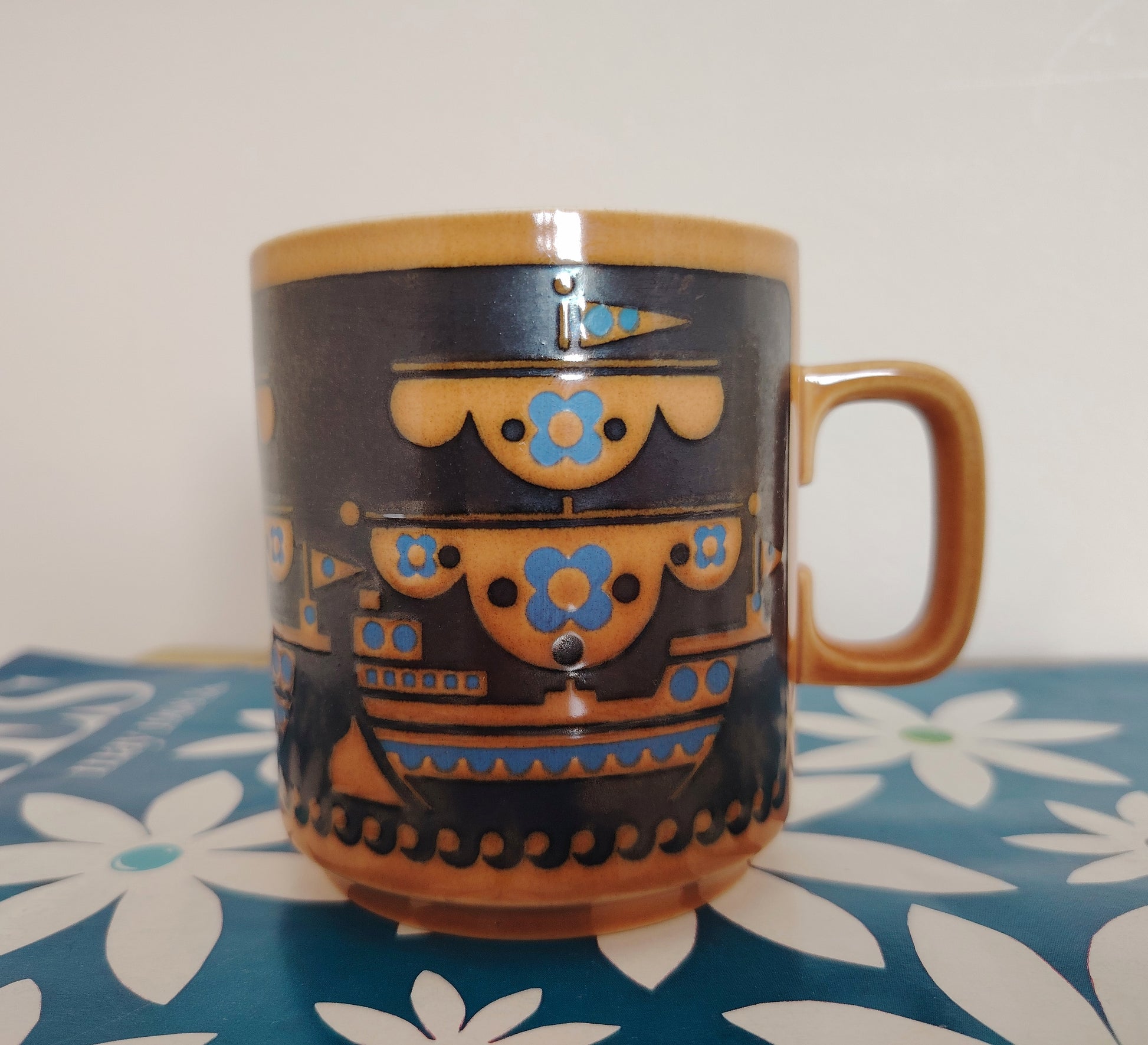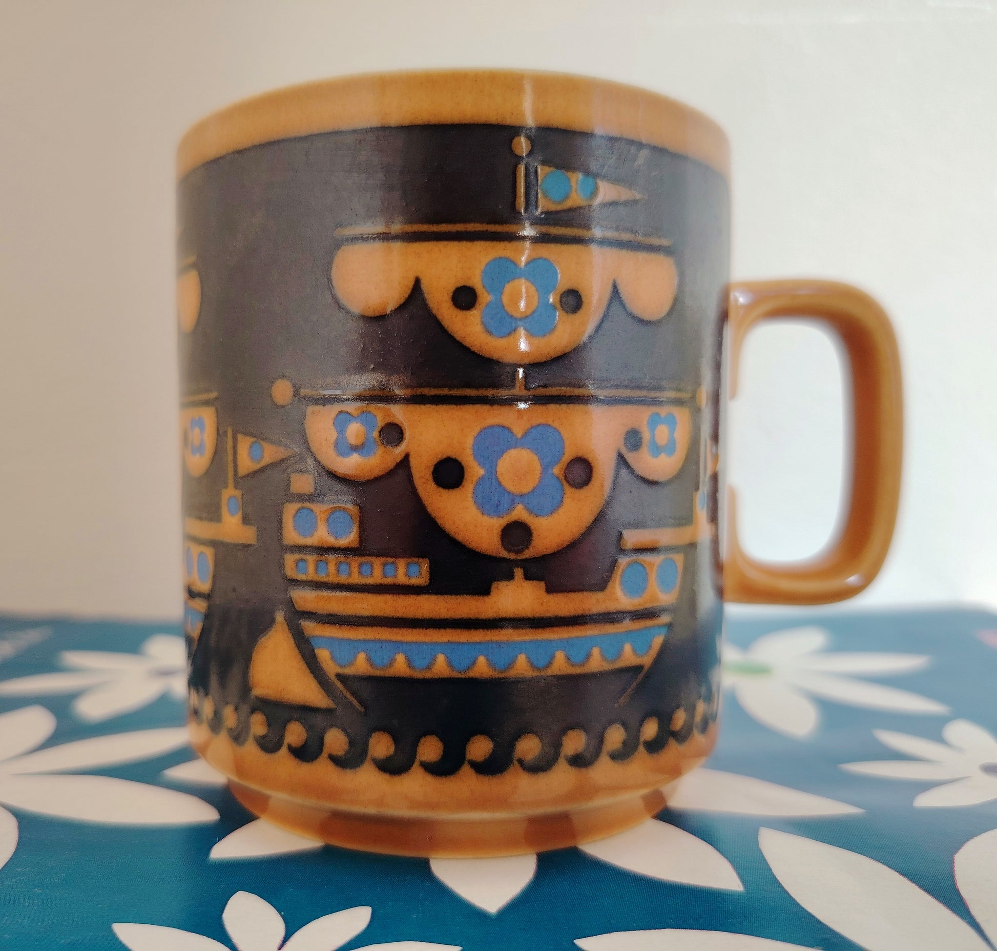 Lovely and rare 1976 Hornsea Pottery 'Boat' Mug by John Clappison in a lovely brown, turquoise and black colour way.
