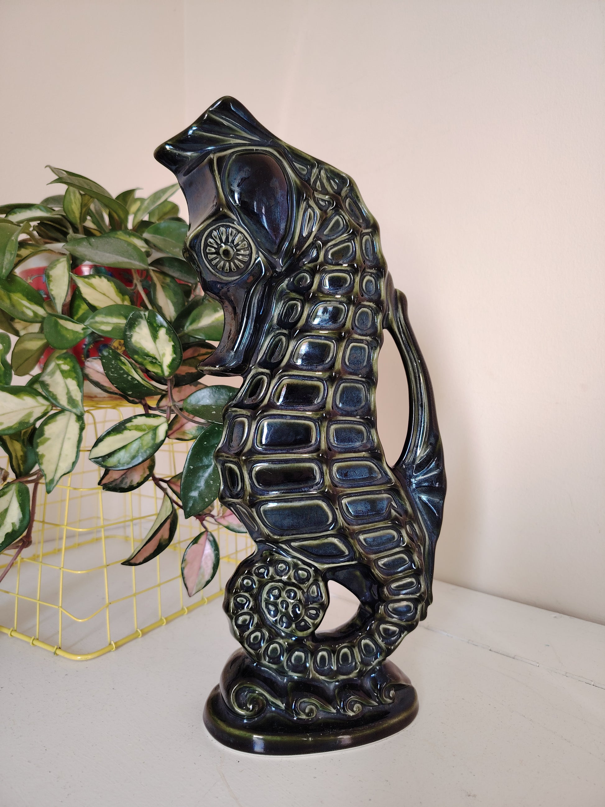 Absolutely stunning and very large and rare Seahorse glug jug, made by Fosters Pottery in the 1970's.
