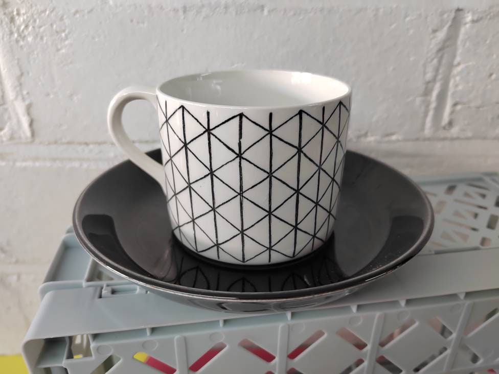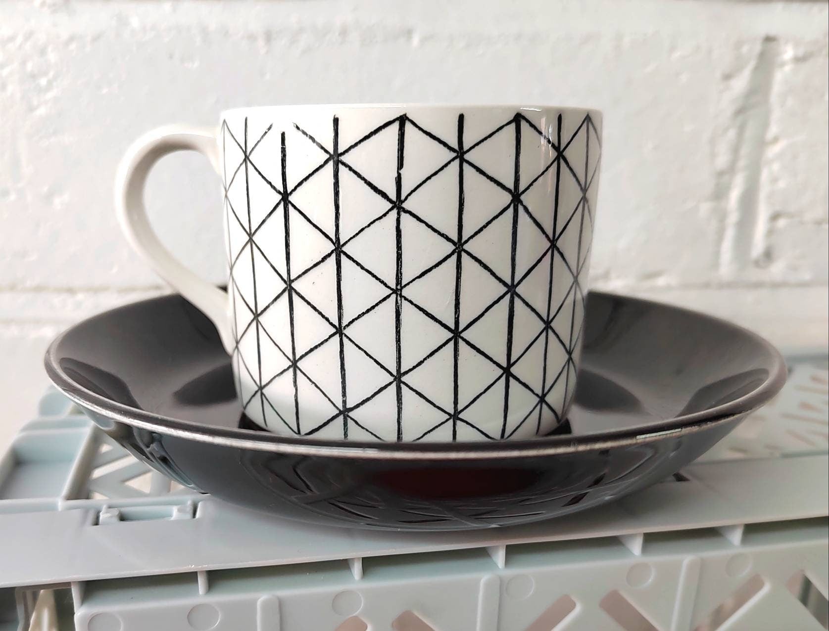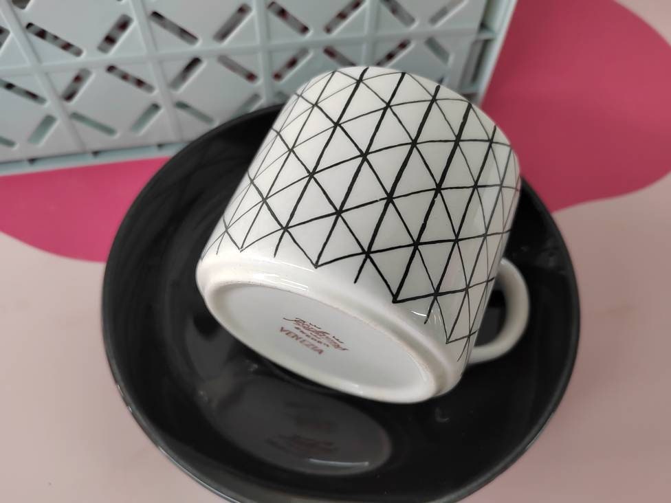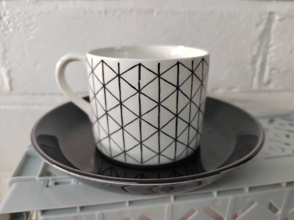 Rorstrand Venezia Mid-Century Modern Cup & Saucer by Hertha Bengtsson / Vintage Black and White Coffee or Tea Cup