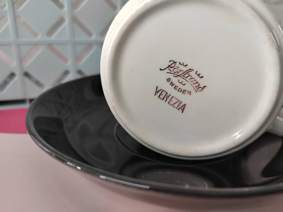 Beautiful and rare Midcentury Swedish designed 'Venezia' coffee/ tea cup by Rorstrand in black.