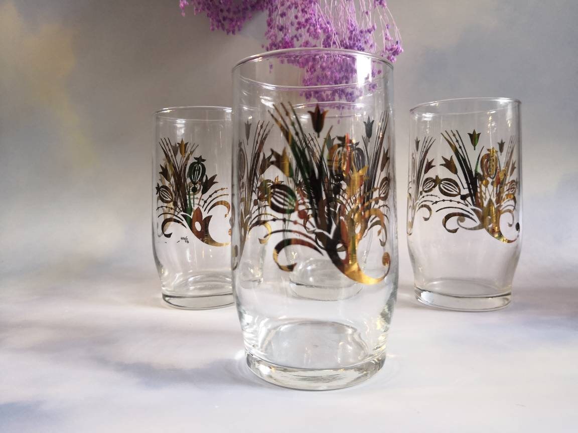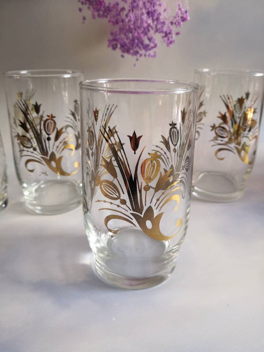 Beautiful set of 4 1950s tumblers with a lovely gold bouquet of flowers design.