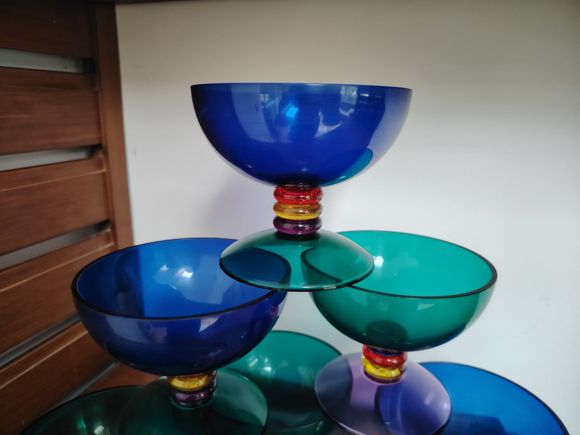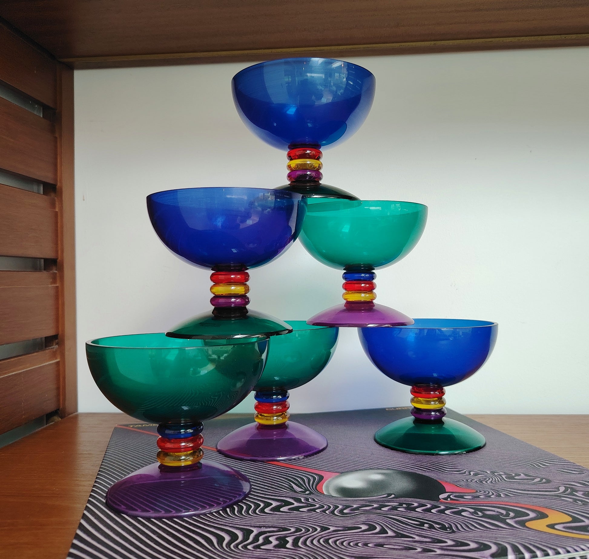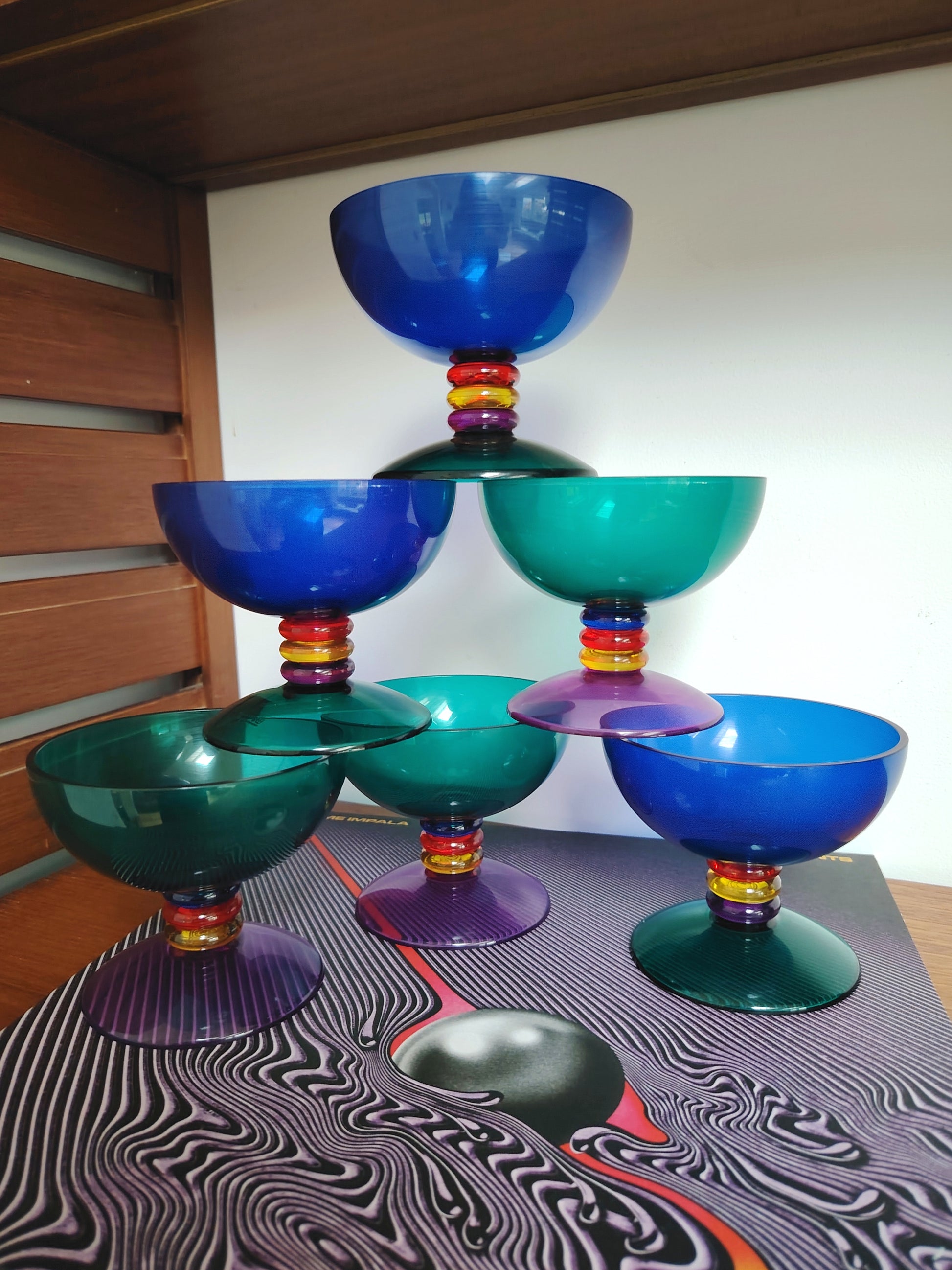 Fabulous set of 6 late 80's Memphis style acrylic coupes/ dessert bowls by Guzinni Italy.