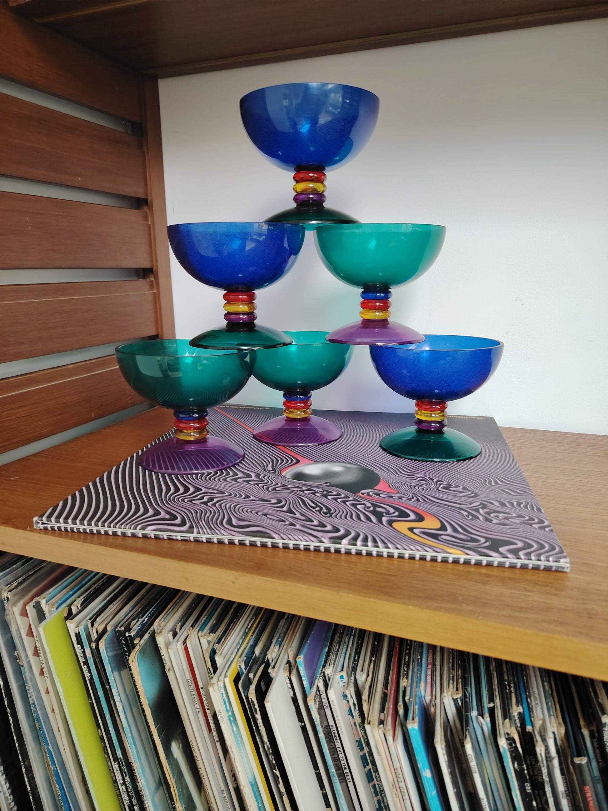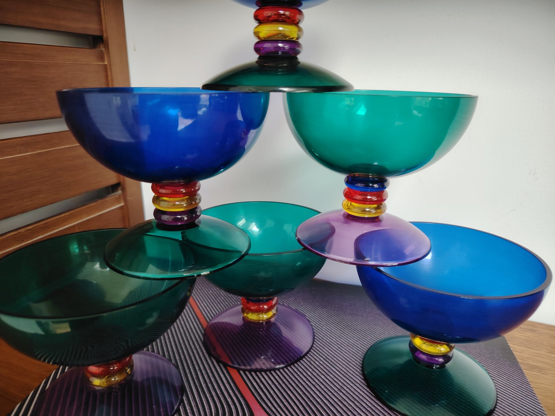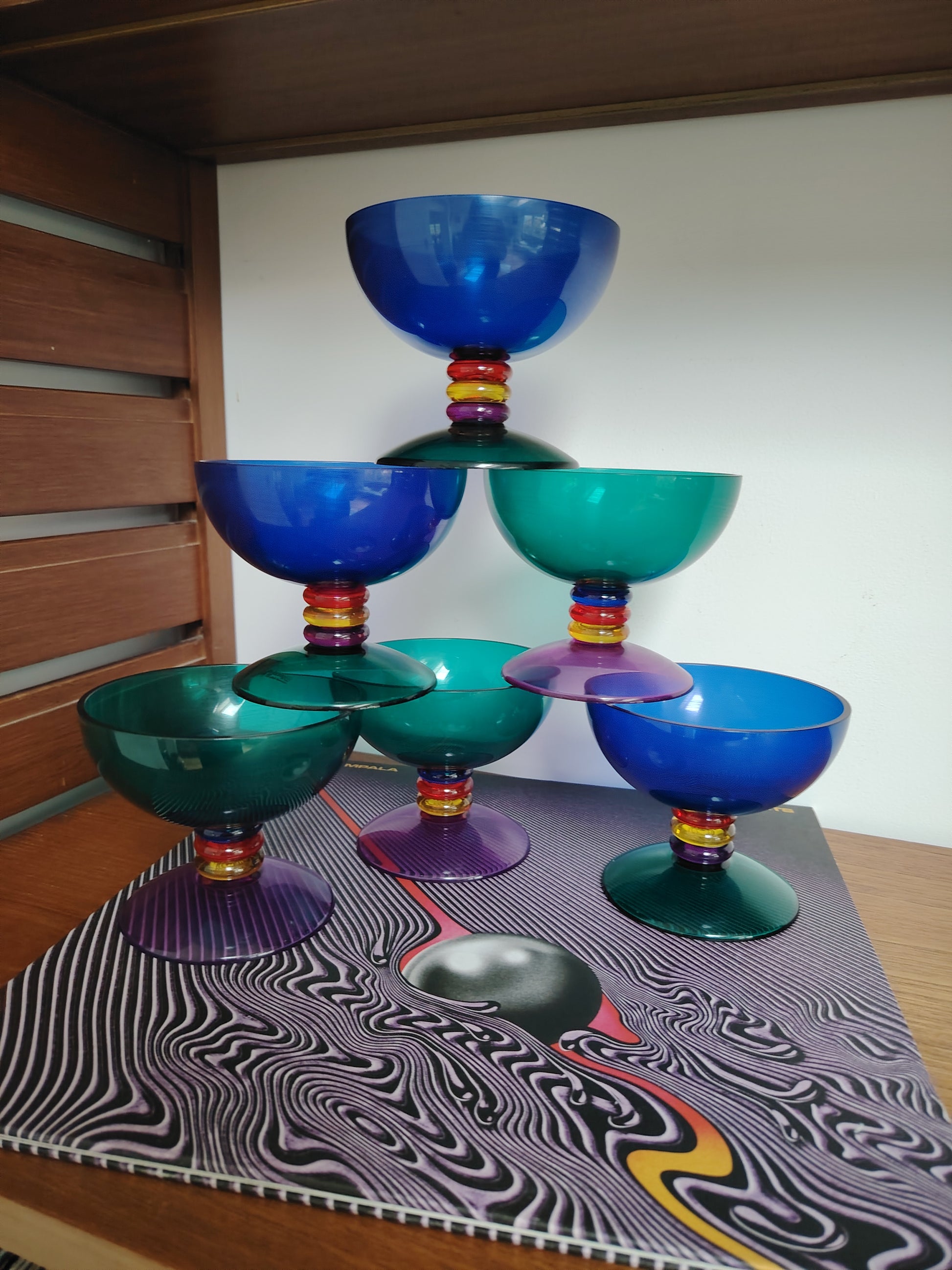 Fabulous set of 6 late 80's Memphis style acrylic coupes/ dessert bowls by Guzinni Italy.