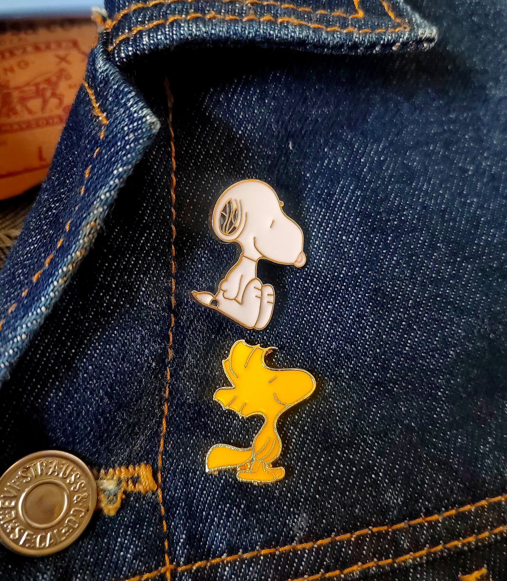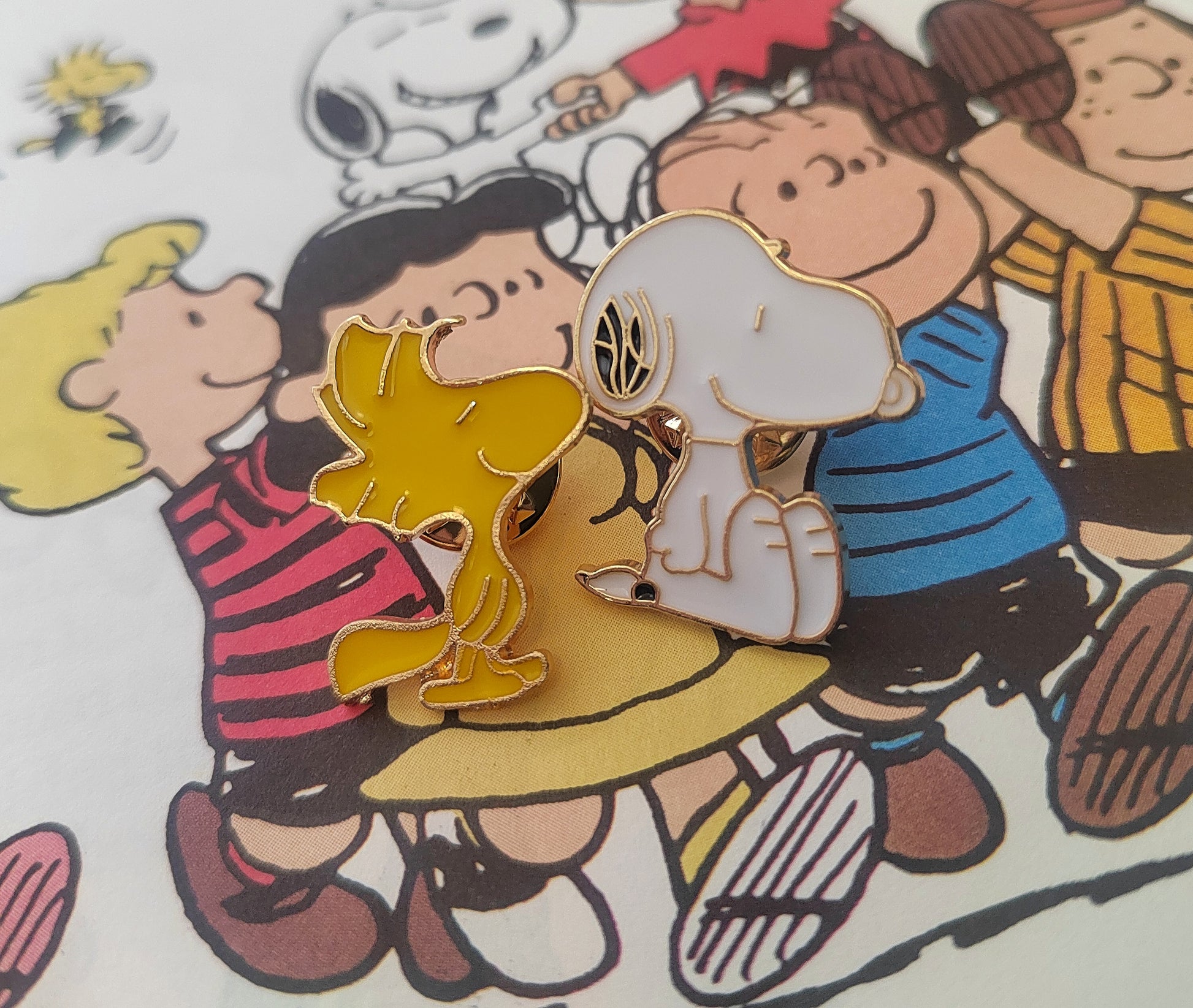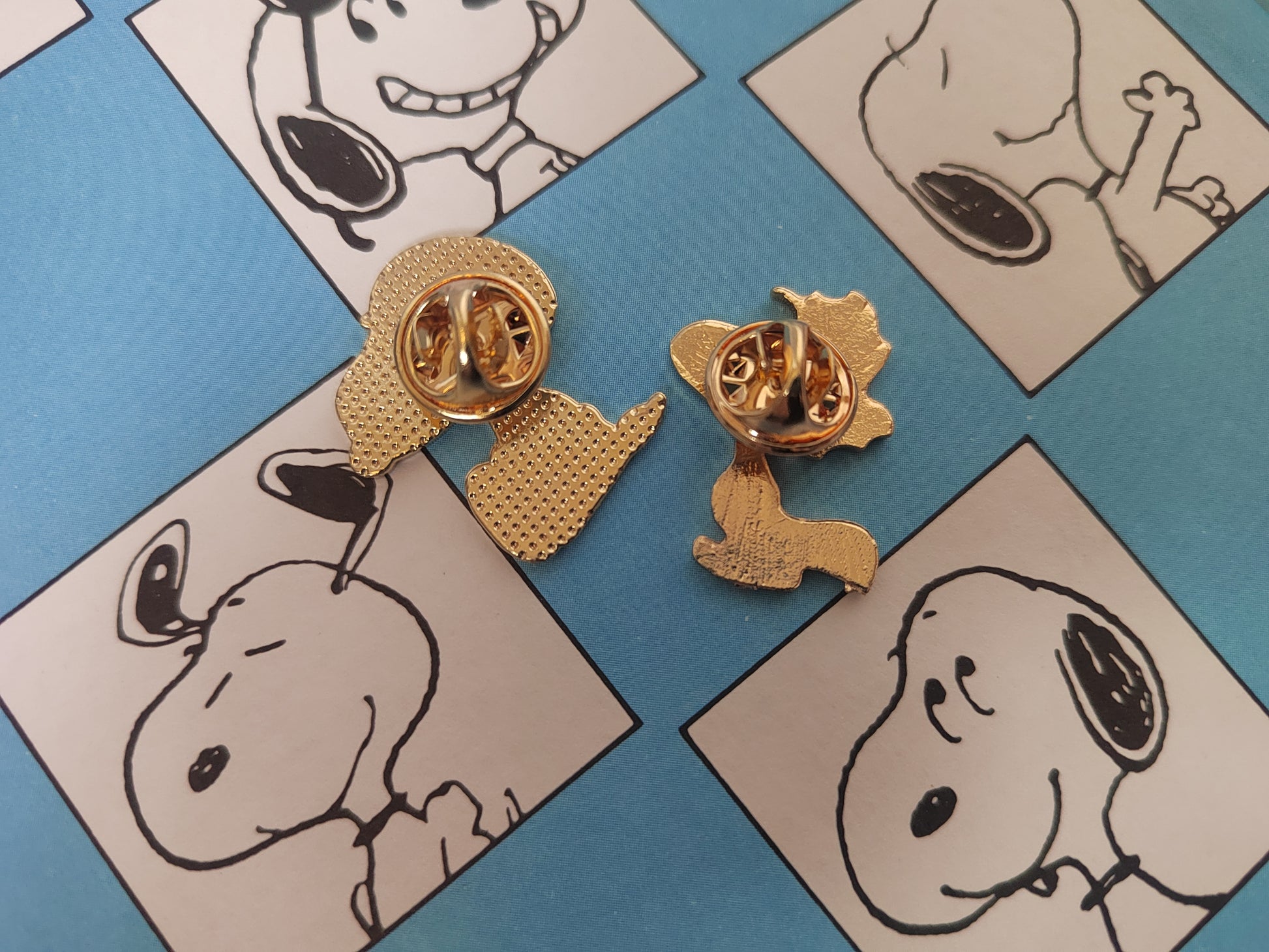 Sweet pair of enamel Snoopy and Woodstock pin badges.