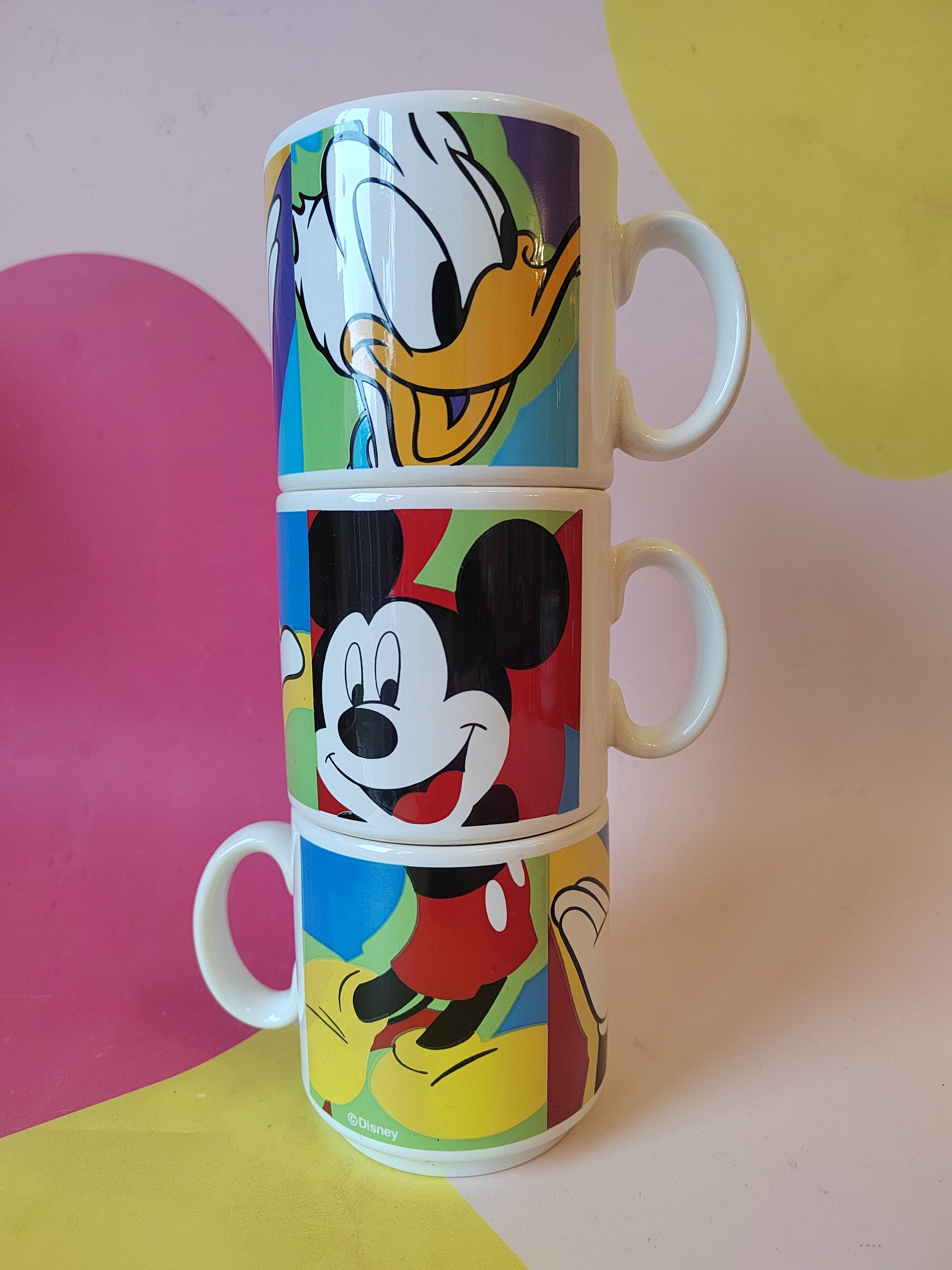 Sweet trio of vintage 90's ceramic Disney mugs, 2 with mickey and 1 with Daffy duck