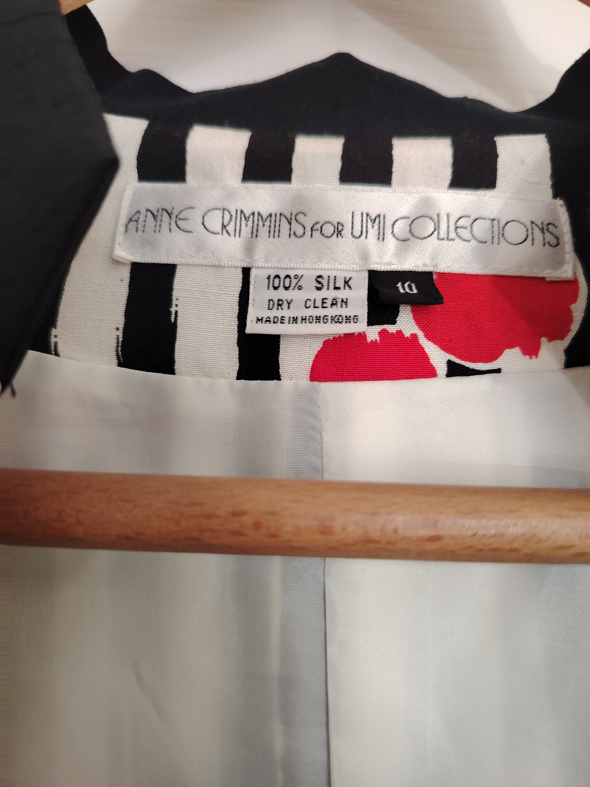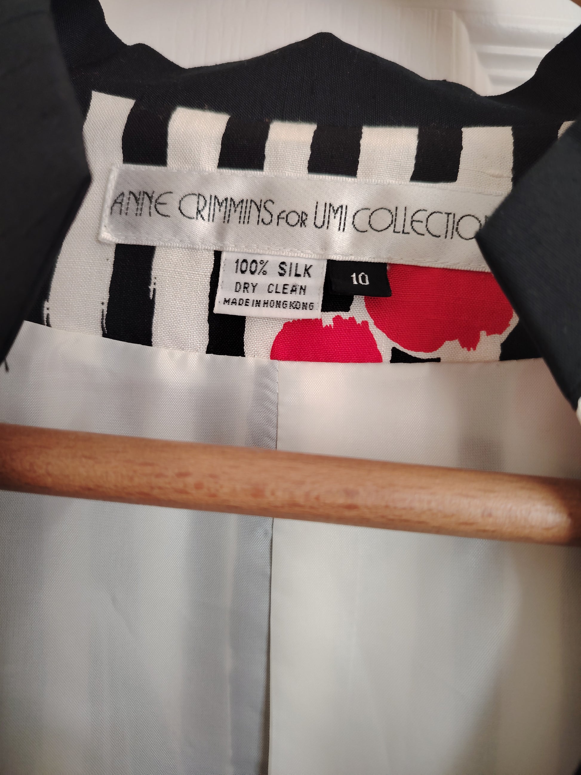 Absolutely stunning vibrant vintage 80's 100% silk jacket, "Anne Crimmns for umi collections" complete with shoulder pads and great shape lapels