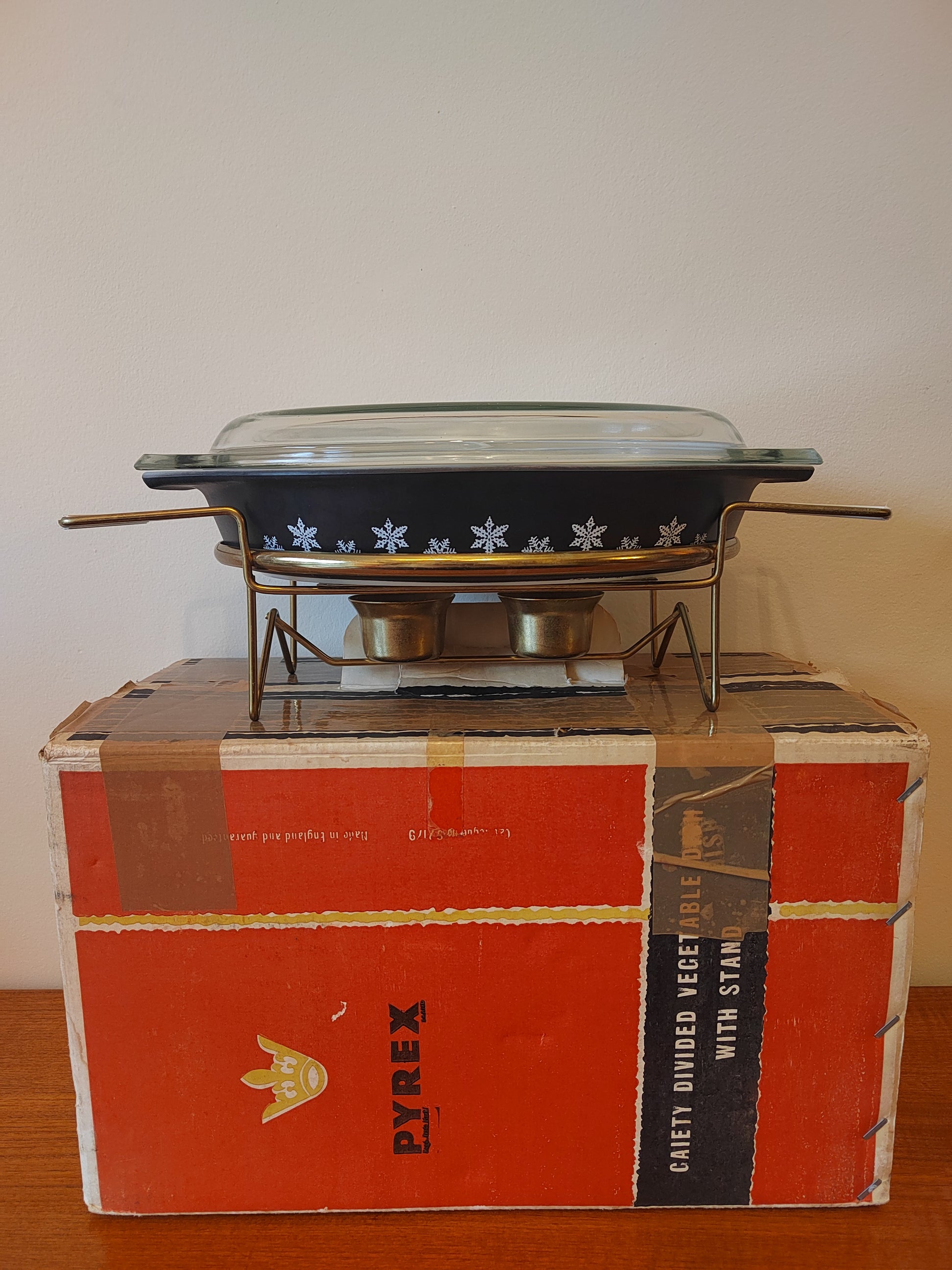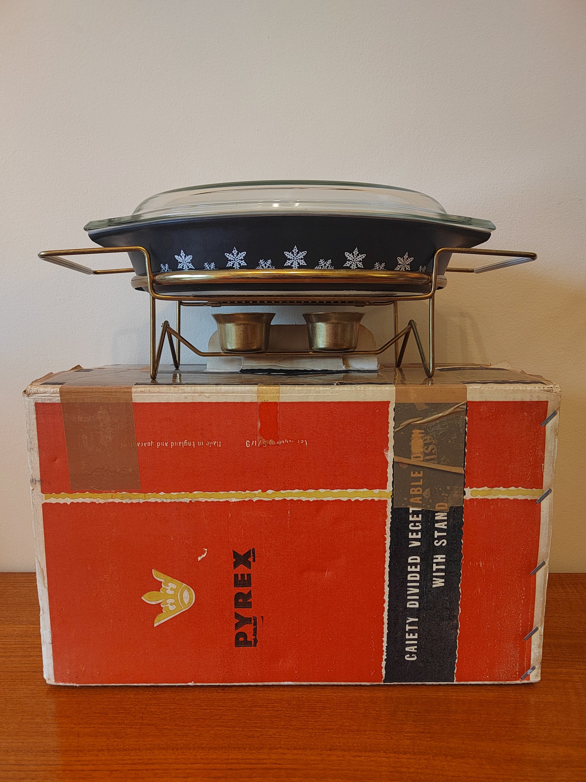 Vintage Boxed Pyrex Gaiety Vegetable Dish with Stand