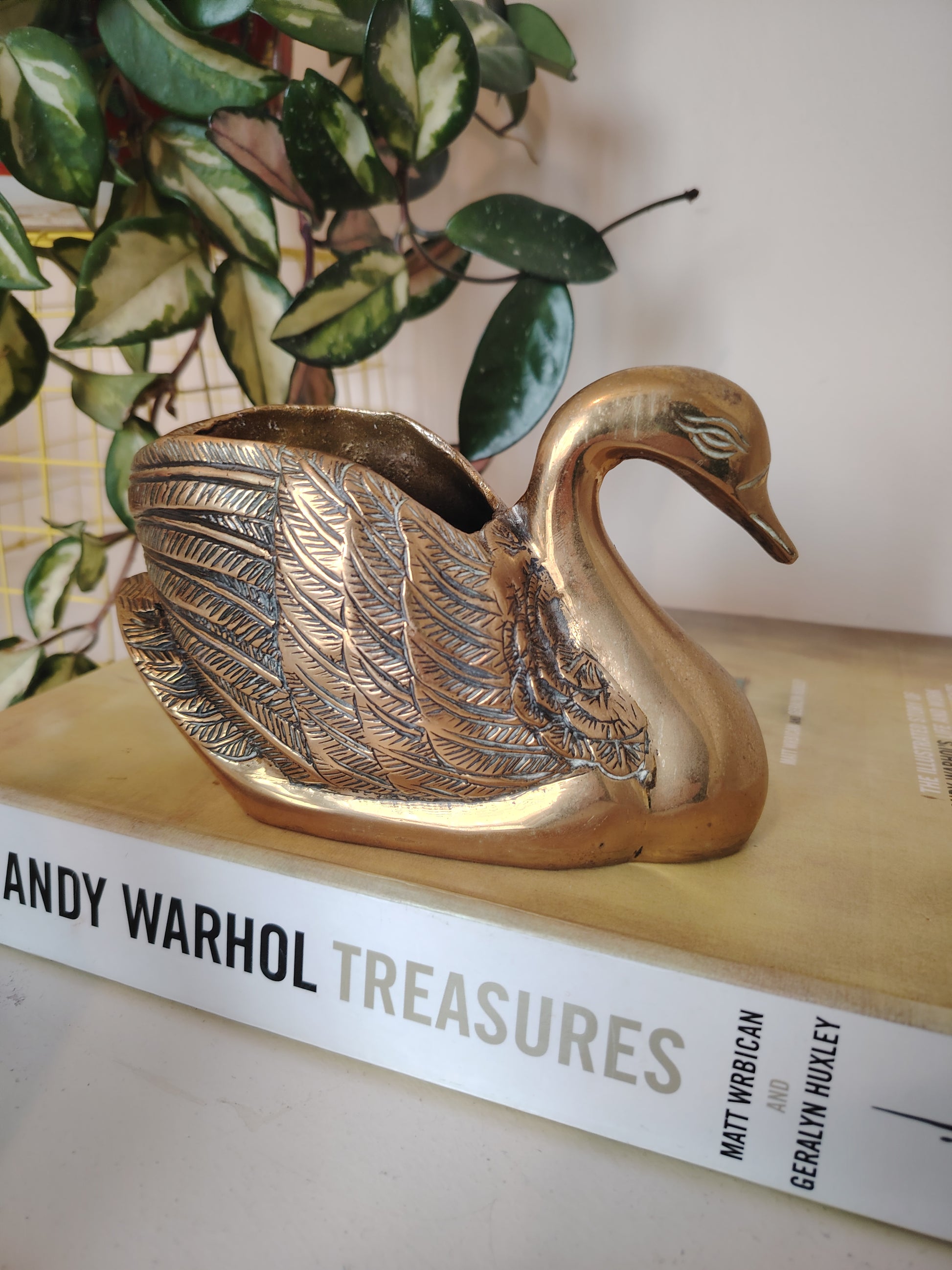 Vintage Brass Swan Planter/ Pot