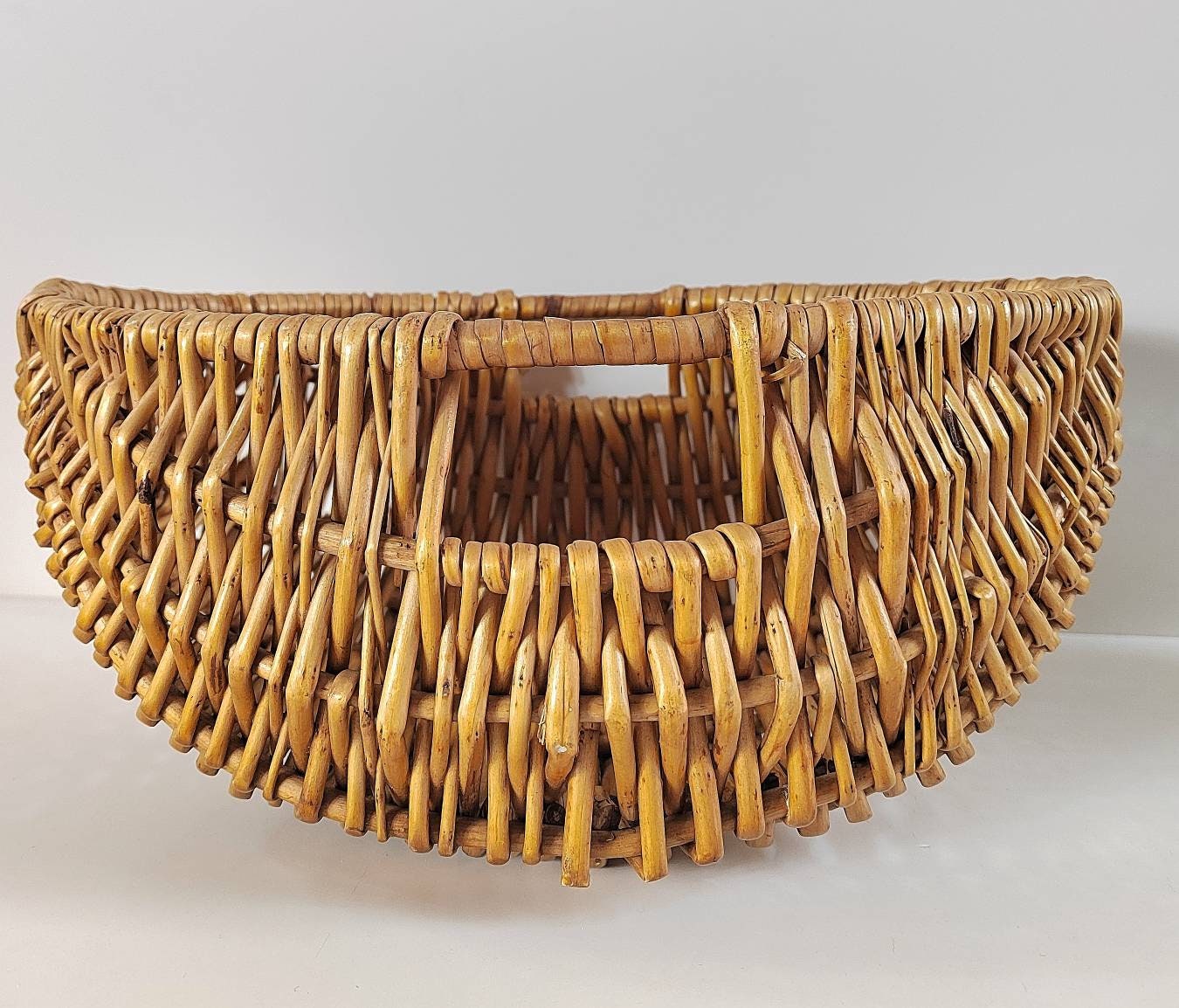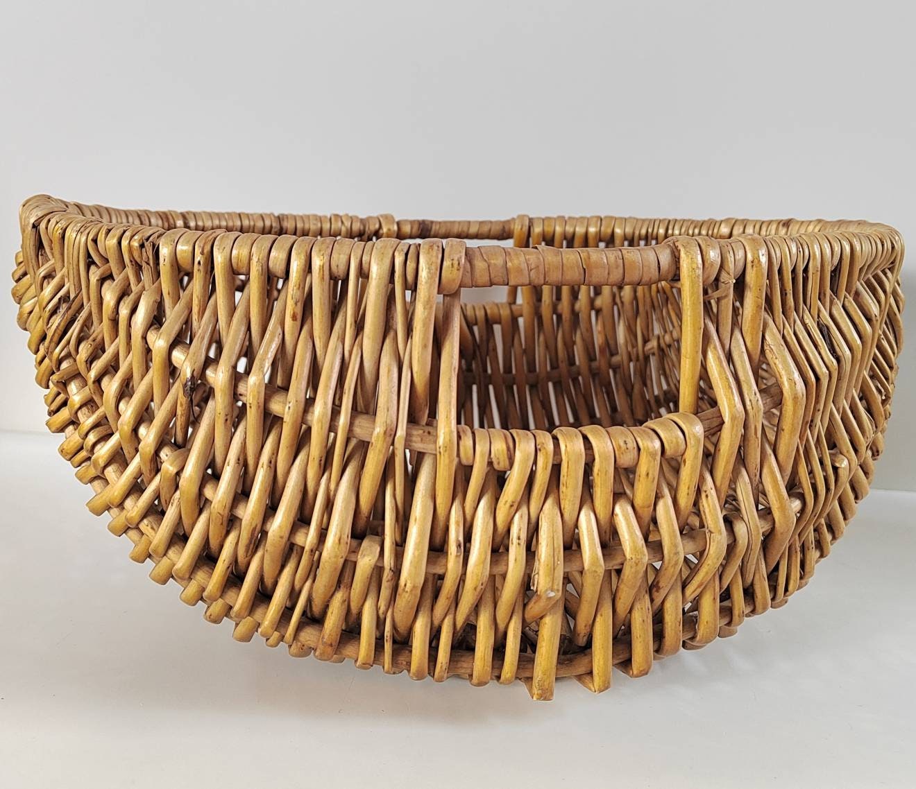 Lovely vintage Oval Shaped Wicker Basket with handles on either side.