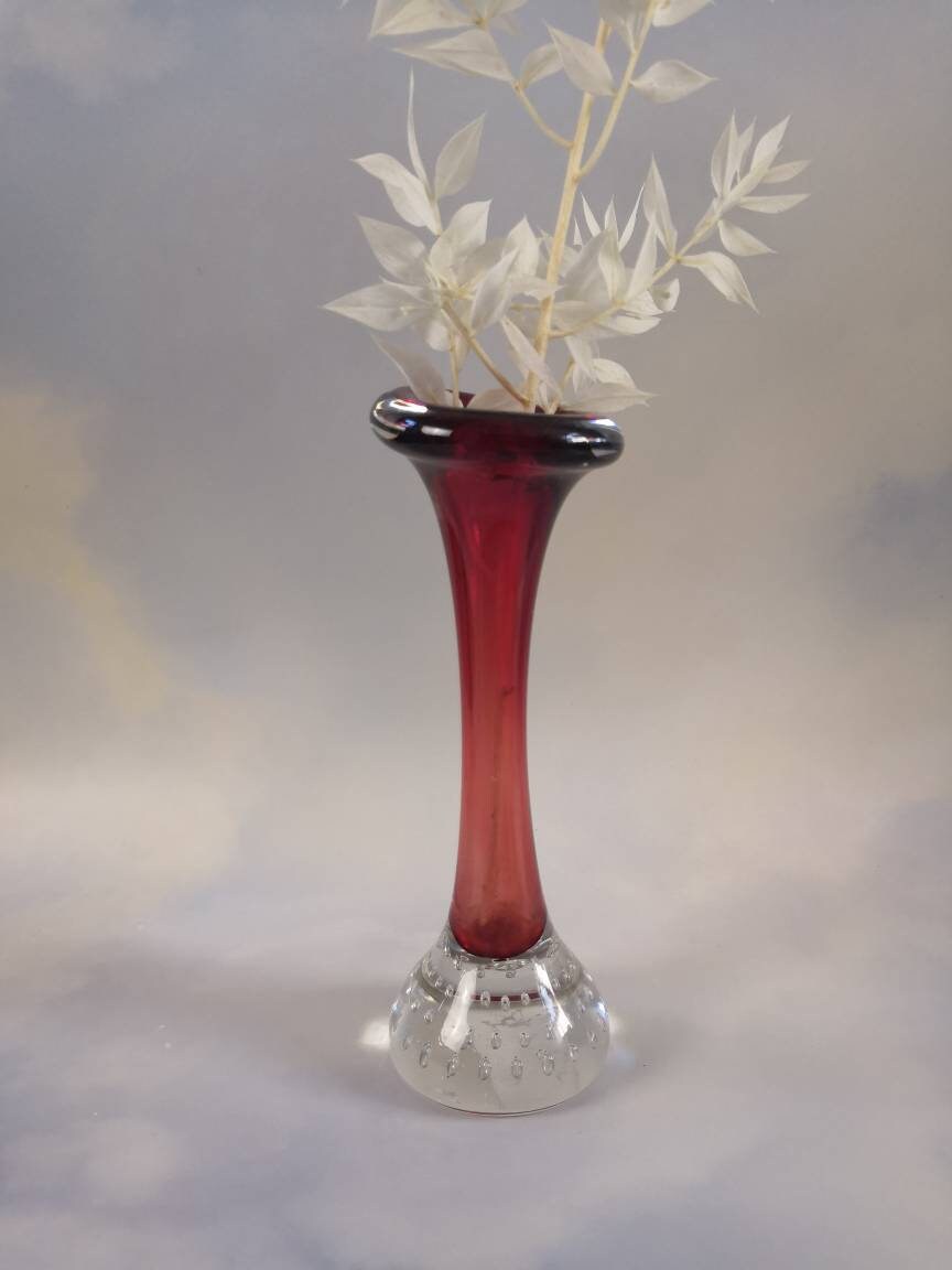 Vintage Red Aseda Glasburk Sweden Glass Bubble Bud Vase