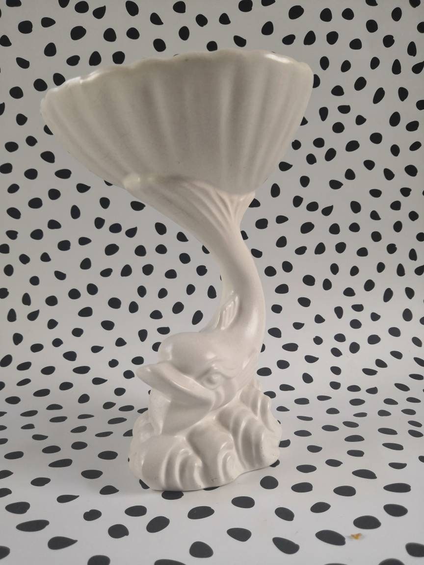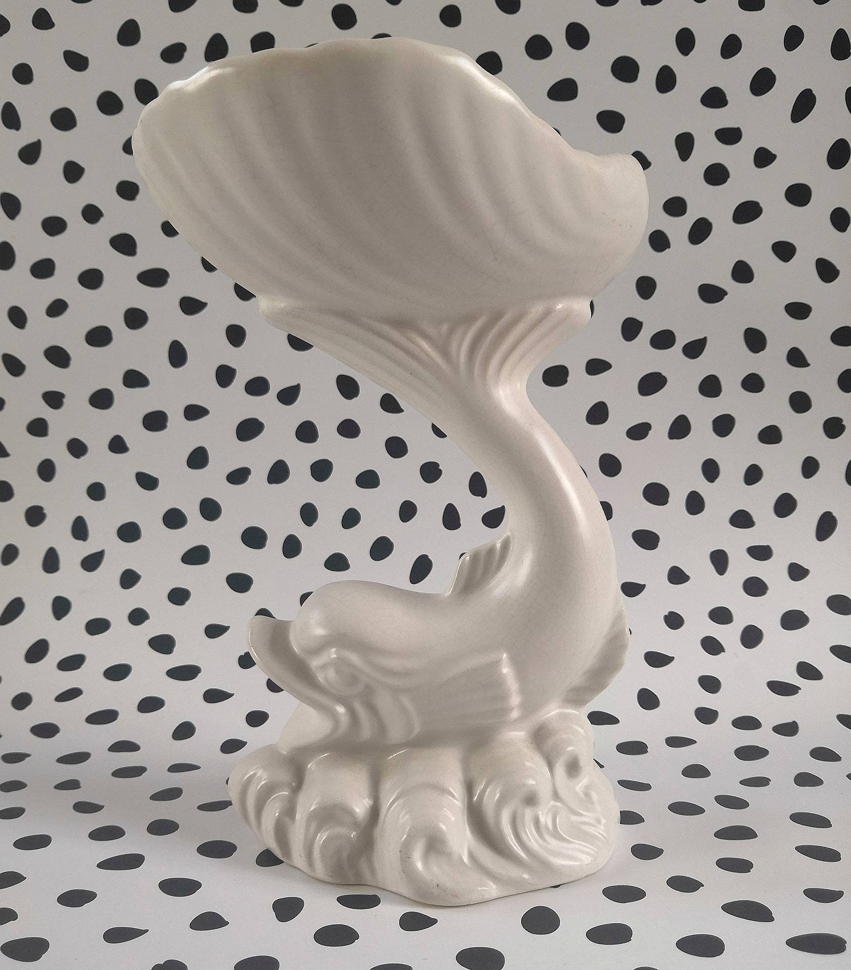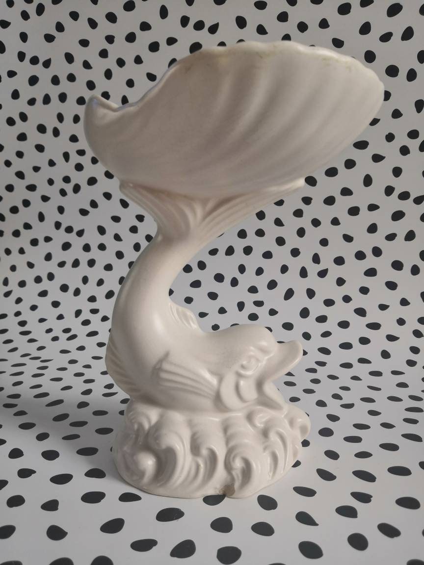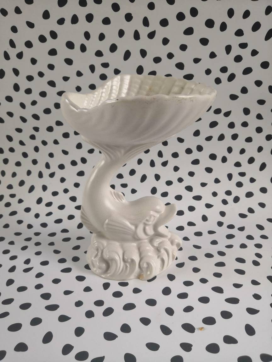 Wonderfully kitsch white ceramic vintage fish and shell-shaped soap dish/ trinket bowl.